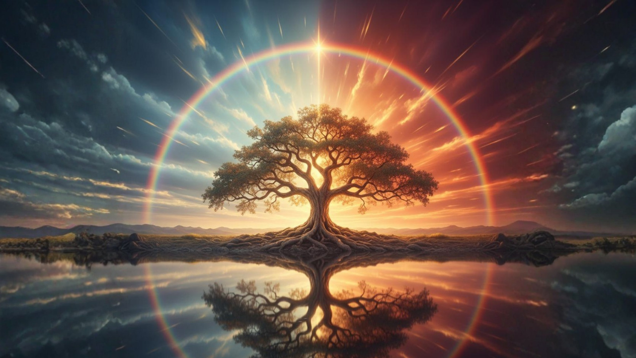 Soon after, another image appeared — a great tree standing beneath a radiant sky. I sent the picture to Sara as I thought it looks like the tree in this year’s word: The Year of Exponentiation. But this time, it looks rapturous in the golden hour of the setting sun.