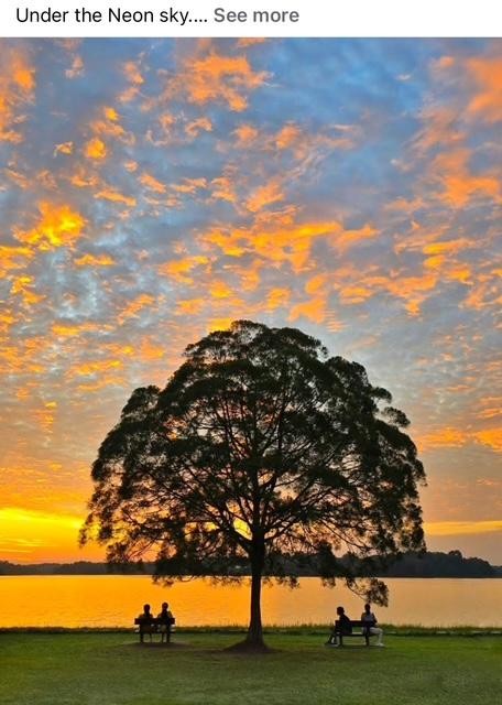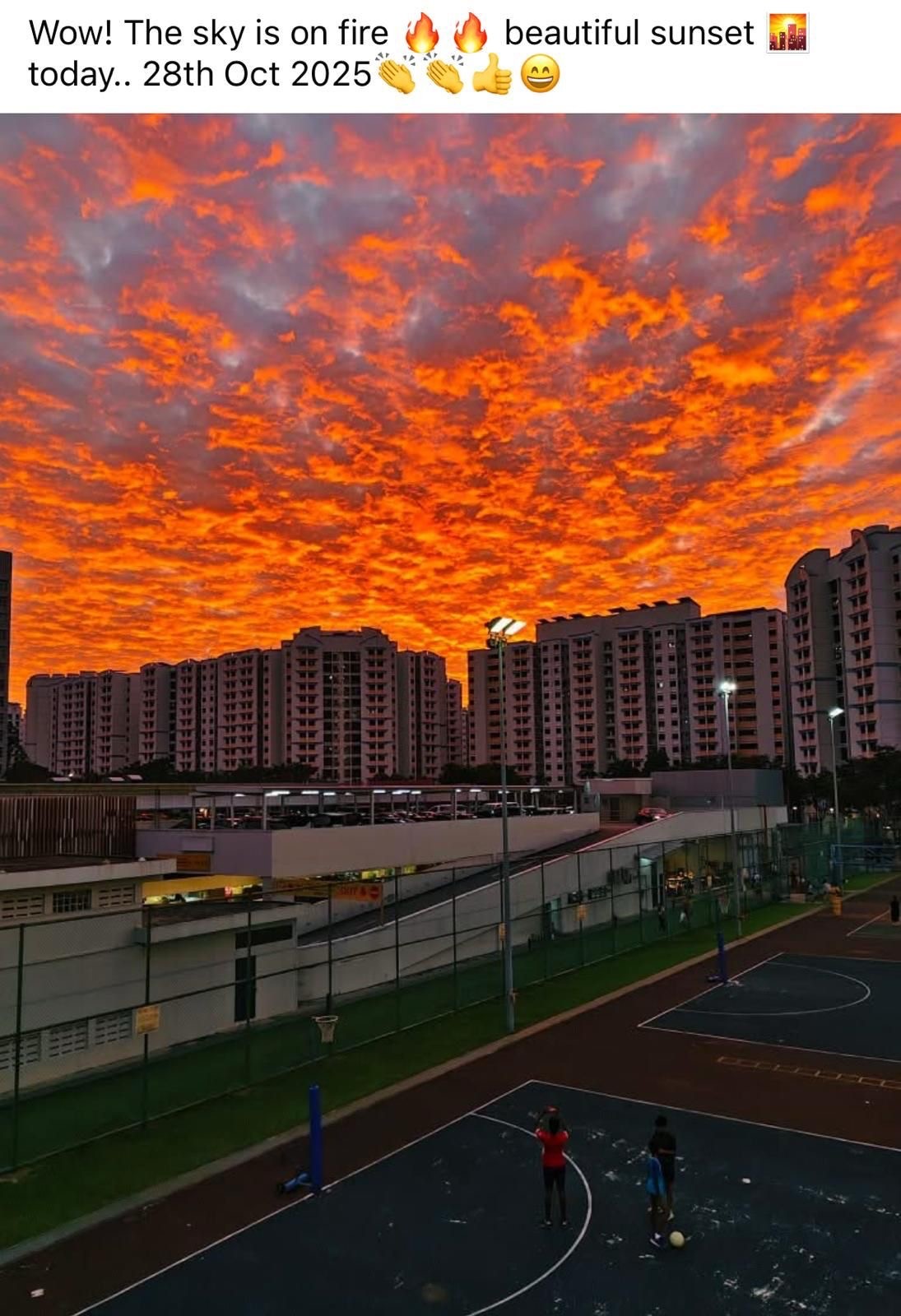 第二天,2025年10月28日,星期二,地平线燃烧着橙色和深红色——一个“燃烧的天空”,许多人用相机捕捉到这一幕并发布在网上。